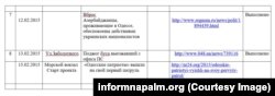 Одни из самых интересных писем в опубликованном массиве – от некоей "Луизы Мамедовой". Она присылает Иналу Ардзинбе ссылки на заказные статьи в СМИ, предлагает кандидатов для сотрудничества, а в январе снабжает его файлом "Одесса Наши.docx", в котором перечисляются личные данные бывших и действующих сотрудников правоохранительных органов Одессы и Одесской области. Но самый интересный документ, присланный ей в администрацию президента, называется "Сводный отчет по акциям за февраль 2015 г." В нем перечисляются "информационные вбросы", рассказывается о спровоцированной драке между сторонниками "Автомайдана" и представителями азербайджанской диаспоры, о поджоге автобуса, выезжавшего из офиса "Правого сектора" – все это со ссылками, подтверждающими, что акция или вброс действительно состоялись: