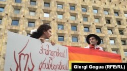 Группа ЛГБТ-активистов проводит мобильные акции протеста. Они собрались перед зданием Министерства образования в Тбилиси и зачитали свое обращение к властям. Небольшой репортаж здесь.