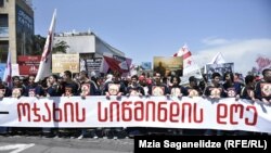 Несколько сотен человек участвуют в шествии, отмечая День святости семьи. Колонна людей с иконами и церковными флагами в национальных костюмах в 13:00 двинулись от здания филармонии, потом прошла проспект Руставели и направилась в сторону кафедрального Собора Святой тройцы.