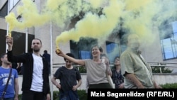Чуть ранее они собрались перед зданием Министерства здравоохранения, труда и социальной защиты и потребовали равных прав для ЛГБТ-сообщества. Там они зажгли факелы желтого цвета.