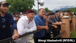 На акцию пришли жители сел Панкисского ущелья - этнические чеченцы-кистинцы и старейшины ущелья.
