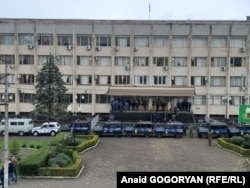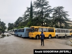 У расположенного рядом комплекса правительственных зданий усилены меры безопасности, на месте собрались сторонники Аслана Бжания. Территория огорожена автобусами, передает корреспондент «Эха Кавказа».