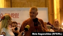 Среди тысяч собравшихся у здания парламента были политики, гражданские активисты, деятели культуры и рядовые граждане. К пришедшим на митинг с трибуны обратился и музыкант Ниаз Диасамидзе: