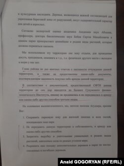 «В 2010 году было принято решение о передаче инфраструктур жилых комплексов и других из-за того, что институт не имел возможности содержать поселок, они были переданы руководству Гулрыпшского района. При передаче инфраструктур дендропарк не числился и не числится сегодня. Более того, им было поручено в ближайшие два года внести соответствующие изменения в земельный баланс этого района. Прошло 12 лет, ни шагу в этом направлении не было выполнено районным руководством».