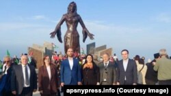 И вот нынче этот день, уже много лет отмечаемый ежегодно во всем мире, где живут адыги и абхазы, ознаменовался открытием новых памятников – на двух противоположных берегах Черного моря. Статуя молодой женщины установлена на побережье в Кефкене, на северо-западе Турецкой Республики. В его открытии приняла участие и делегация из Абхазии – председатель Госкомитета по репатриации и парламентарии. Монумент имеет высоту восемь метров плюс два метра – пьедестал, его вес около пяти тонн. Как рассказывал в СМИ заместитель председателя Госкомитета по репатриации Абхазии Астамур Багателия, идея поставить этот памятник зародилась давно. И вот наконец ее удалось реализовать при поддержке муниципалитета Коджаэли благодаря усилиям Абхазского культурного центра, который возглавляет Хасан Кардия. В городе Кандыр этой провинции находится кладбище жертв депортации горцев. В 2021 году Абхазский культурный центр высадил в этом районе оливковую рощу из трехсот деревьев в память о них.