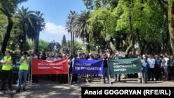 Сегодня в два часа дня в Сухуме у Абхазского драмтеатра им. Самсона Чанба, на площади, которую многие неофициально называют Театральной, собрались участники «народного митинга», недовольные политикой власти. Впрочем, на самой этой площадке, ярко залитой почти уже летним солнцем, народу было не так много – в основном все рассредоточились на садовых скамейках в парке имени Баграта Шинкуба, люди стояли и прохаживались по набережной Махаджиров.
