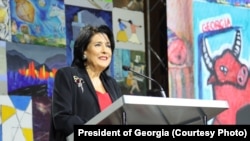 «Поздравляю всю Грузию, стоящих здесь людей, кем бы они ни были, на какой бы политической стороне они ни стояли, поздравляю людей в регионах, поздравляю наших граждан в Абхазии и Южной Осетии, которые также радуются этому дню! Это большой праздник, и я очень рада, что все вместе стоят здесь!»