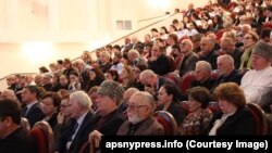 Открывая вчера конференцию, ректор АГУ Алеко Гварамия напомнил, что 6 мая исполнилось 110 лет со дня рождения выдающегося абхазского историка Георгия Дзидзария. Георгий Алексеевич в 1975 году написал свою знаменитую монографию «Махаджирство и проблемы в истории Абхазии XIX столетия». Гварамия рассказал о том, как в 1989 году университет приглашал потомков абхазских махаджиров на учебу в Сухум.