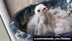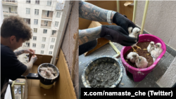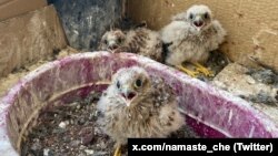 Пользователи твиттера и телеграма следят за буднями соколиной семьи, поселившейся на балконе в Тбилиси.