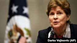 «<…> А также в рамках законопроекта об обороне, который только что был принят Комитетом по вооруженным силам. Поэтому мы надеемся, что это послужит очень сильным сигналом руководству Грузии о том, что у их действий есть последствия», – сказала сенатор Джин Шахин.