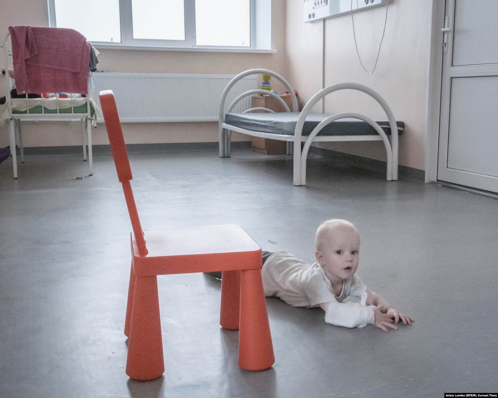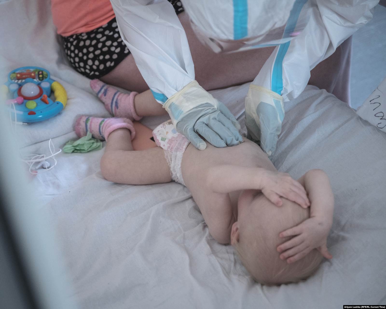 Оксана с годовалой Софьей попали в отделение накануне. "Прошел он как обычно, ведь с детьми не соскучишься", – рассказывает о первом дне в больнице Оксана. Софья ползком исследует палату – из этого бокса ей никуда нельзя выходить. Запрет действует, чтобы избежать перекрестного заражения: наличие ковида не исключает других инфекций.
