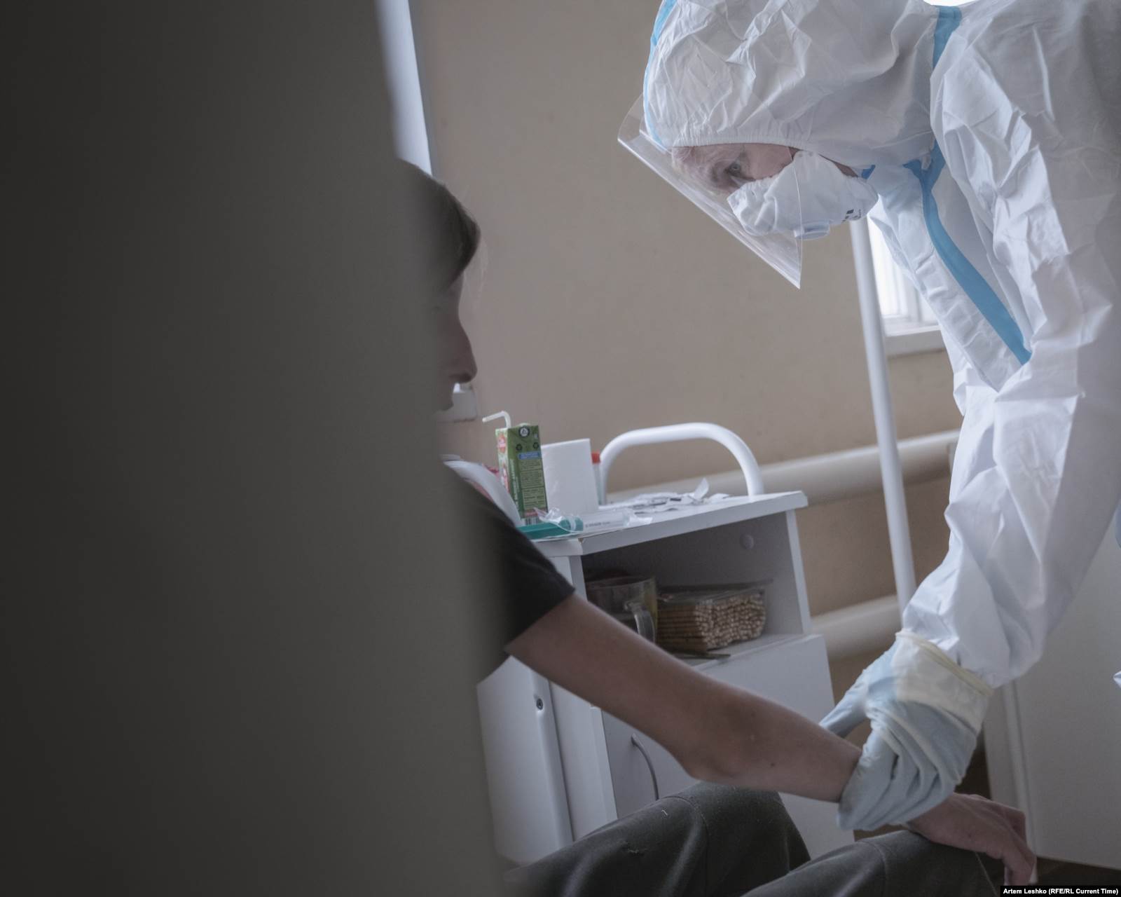 Санитарка Полина Мацегор беседует со школьницей Верой: