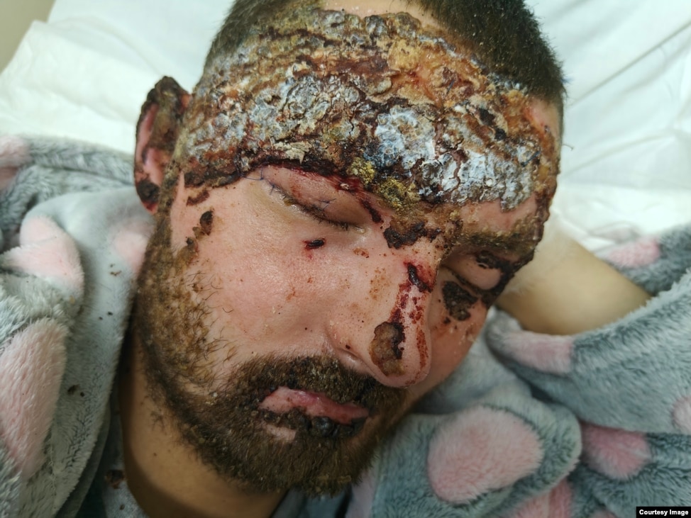 В больнице в Донецке ему оказали первую помощь и прооперировали. Кисти рук обгорели, лицо и уши запеклись, осколки застряли под коленом и в глазу. Кристина приехала в Донецк и уговорила врачей, чтобы Вячеслава эвакуировали в Ростов.