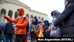Вторые сутки у парламента продолжается акция с требованием новых выборов. Протестующие перед парламентом считают, что правительство «Грузинской мечты» сфальсифицировало выборы 26 октября. Несмотря на холод и дождь, перед началом заседания участники митинга собрались как перед парламентом, на проспекте Руставели, так и сзади здания, на углу улицы Чичинадзе.