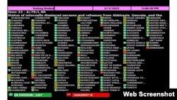 Не присутствовали на голосовании также Венесуэла и Науру, признающие независимость Абхазии и Южной Осетии.