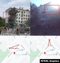 На сайте photobuildings.com можно найти несколько фотографий того, как здание управления СБУ по Лисичанску выглядело до удара. Если сравнить их с видеозаписью, опубликованной Сергеем Гайдаем, видно, что россияне подняли на флагшток российский флаг, который в итоге остался единственной уцелевшей при ударе деталью.